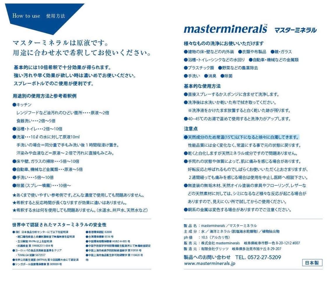 まとめ買い3セットmasterminerals(マスターミネラル) 洗剤 無添加 無害 100%天然成分 除菌 消臭 天然ミネラル (300ml原液+空スプレーボトル) | 【エンビロン正規代理店】unerencontre(ユヌ・ランコント)